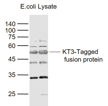 Lane 1: KT3-Tagged Fusion Protein Overexpression E.coli Lysate (Cat#: bs-41403P) at 2ug