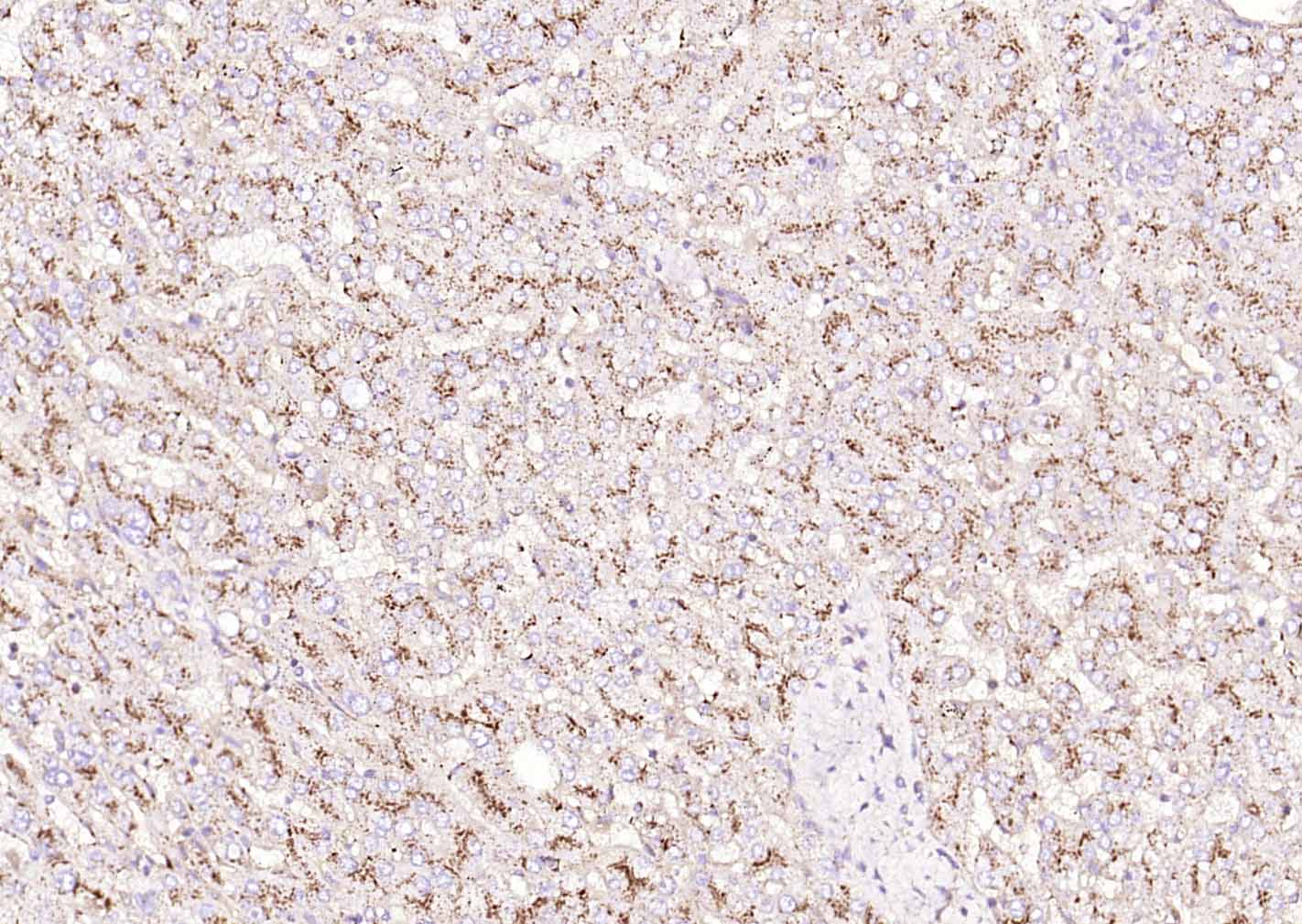 Paraformaldehyde-fixed, paraffin embedded Human Liver Cancer; Antigen retrieval by boiling in sodium citrate buffer (pH6.0) for 15 min; Antibody incubation with LAMP1 Polyclonal Antibody, Unconjugated (bs-1970R) at 1:200 overnight at 4°C, followed by conjugation to the bs-0295G-HRP and DAB (C-0010) staining.