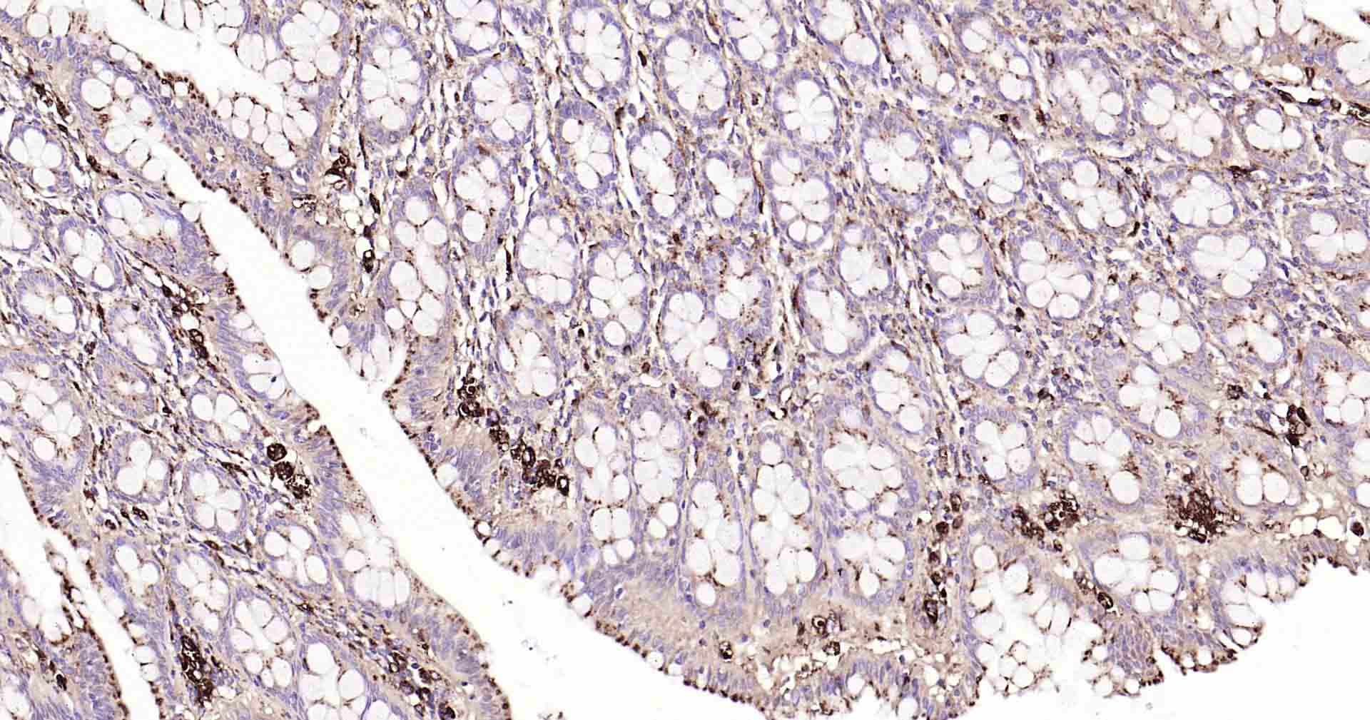 Paraformaldehyde-fixed, paraffin embedded Human Colon; Antigen retrieval by boiling in sodium citrate buffer (pH6.0) for 15 min; Antibody incubation with LAMP1 Polyclonal Antibody, Unconjugated (bs-1970R) at 1:200 overnight at 4°C, followed by conjugation to the bs-0295G-HRP and DAB (C-0010) staining.