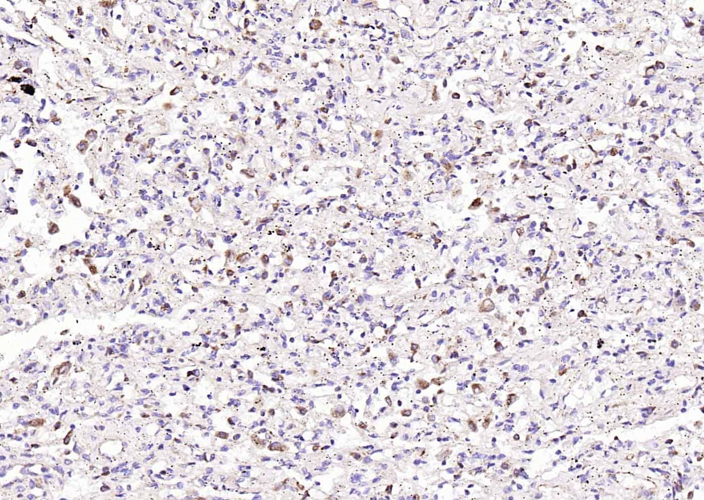 Paraformaldehyde-fixed, paraffin embedded Human Spleen; Antigen retrieval by boiling in sodium citrate buffer (pH6.0) for 15 min; Antibody incubation with LAMP1 Polyclonal Antibody, Unconjugated (bs-1970R) at 1:200 overnight at 4°C, followed by conjugation to the bs-0295G-HRP and DAB (C-0010) staining.