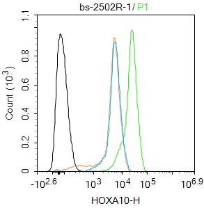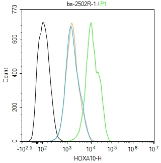 Primary Antibody (green line): Rabbit Anti-HOXA10 antibody (bs-2502R)