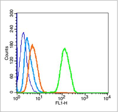 Secondary Antibody (white blue line): Goat anti-rabbit IgG-FITC,Dilution: 1μg /test.