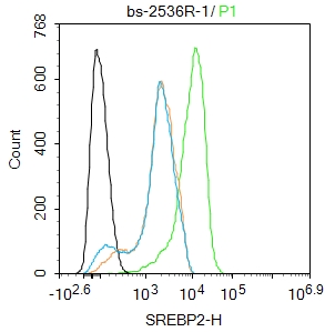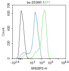 Primary Antibody (green line): Rabbit Anti-SREBP2 antibody (bs-2536R)