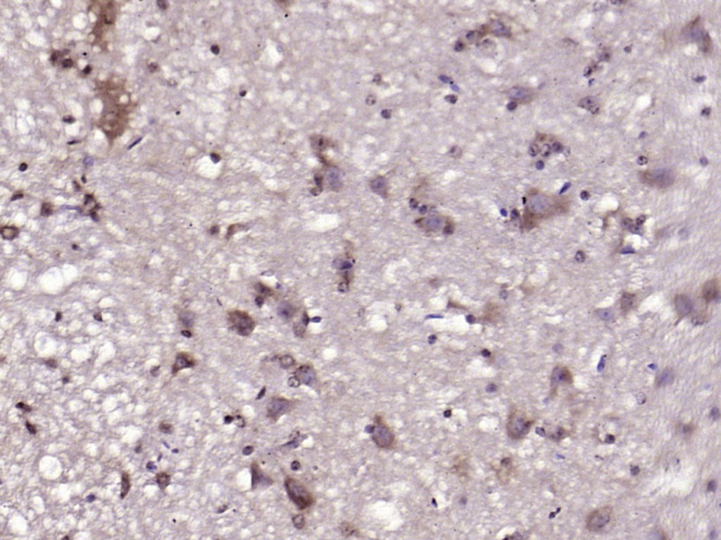 Paraformaldehyde-fixed, paraffin embedded (mouse spinal cord); Antigen retrieval by boiling in sodium citrate buffer (pH6.0) for 15min; Block endogenous peroxidase by 3% hydrogen peroxide for 20 minutes; Blocking buffer (normal goat serum) at 37°C for 30min; Antibody incubation with (GLUT12) Polyclonal Antibody, Unconjugated (bs-2540R) at 1:200 overnight at 4°C, followed by operating according to SP Kit(Rabbit) (sp-0023) instructionsand DAB staining.