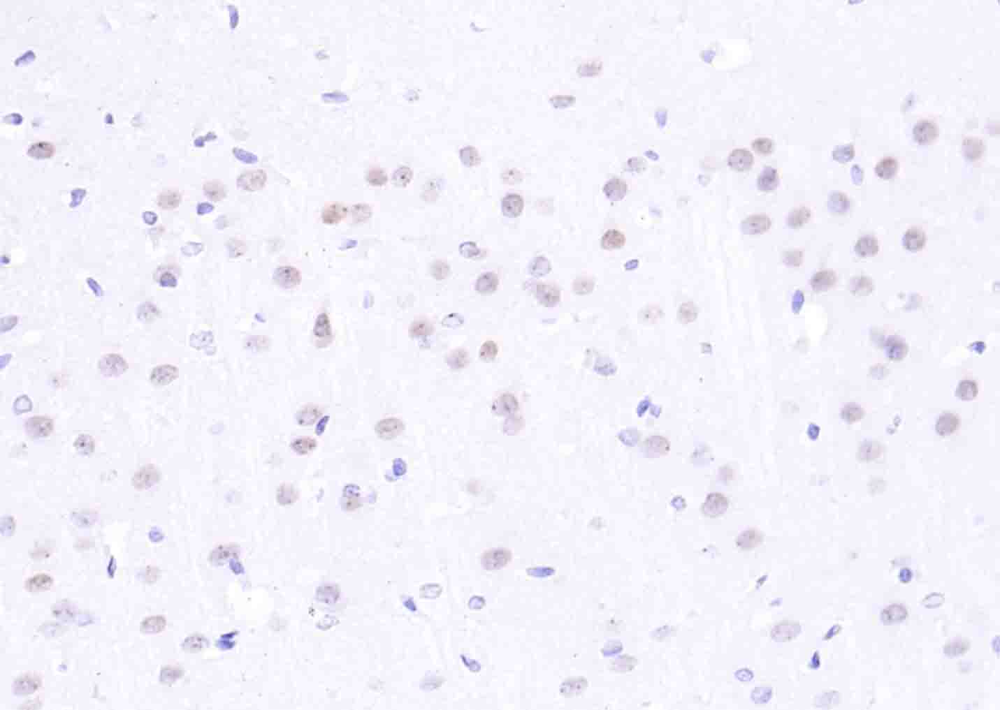 Paraformaldehyde-fixed, paraffin embedded (mouse brain); Antigen retrieval by boiling in sodium citrate buffer (pH6.0) for 15min; Block endogenous peroxidase by 3% hydrogen peroxide for 20 minutes; Blocking buffer (normal goat serum) at 37°C for 30min; Antibody incubation with (H2AX) Polyclonal Antibody, Unconjugated (bs-2560) at 1:200 overnight at 4°C, followed by operating according to SP Kit(Rabbit) (sp-0023) instructionsand DAB staining.