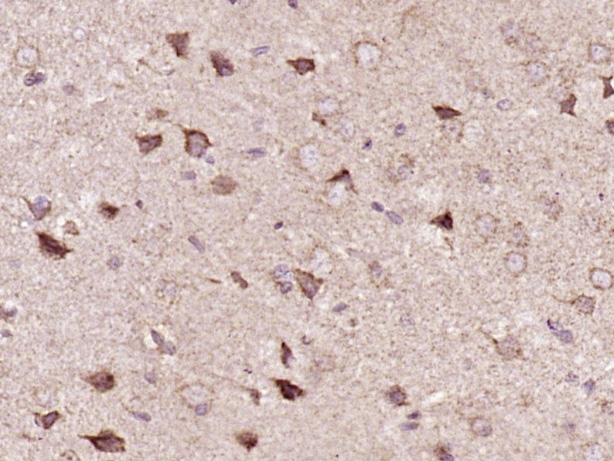 Paraformaldehyde-fixed, paraffin embedded (Rat brain); Antigen retrieval by boiling in sodium citrate buffer (pH6.0) for 15min; Block endogenous peroxidase by 3% hydrogen peroxide for 20 minutes; Blocking buffer (normal goat serum) at 37°C for 30min; Antibody incubation with (ADAR1) Polyclonal Antibody, Unconjugated (bs-2168R) at 1:400 overnight at 4°C, followed by a conjugated secondary antibody (sp-0023) for 20 minutes and DAB staining.