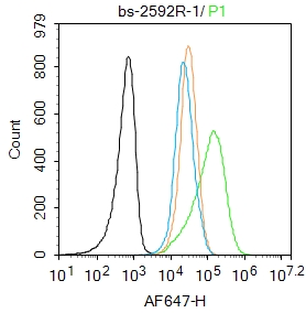 Primary Antibody (green line): Rabbit Anti-JNK1+JNK2+JNK3 antibody (bs-2592R)