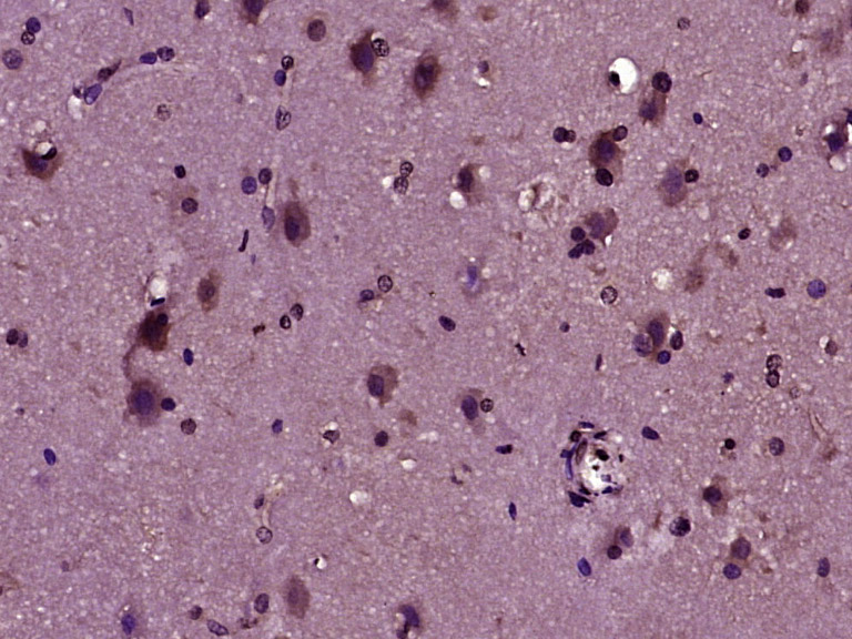 Paraformaldehyde-fixed, paraffin embedded (human brain glioma); Antigen retrieval by boiling in sodium citrate buffer (pH6.0) for 15min; Block endogenous peroxidase by 3% hydrogen peroxide for 20 minutes; Blocking buffer (normal goat serum) at 37°C for 30min; Antibody incubation with (LYRIC) Polyclonal Antibody, Unconjugated (bs-2231R) at 1:400 overnight at 4°C, followed by operating according to SP Kit(Rabbit) (sp-0023) instructionsand DAB staining.