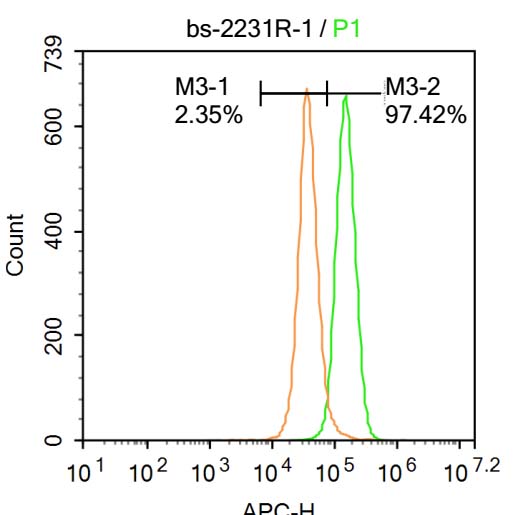 Primary Antibody (green line): Rabbit Anti-LYRIC antibody (bs-2231R)