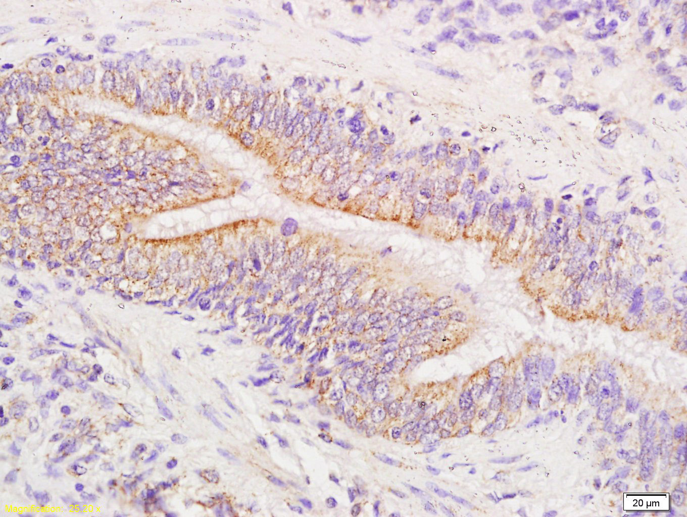 Incubation: Anti-Phospho-FAK(Tyr576/577) Polyclonal Antibody, Unconjugated(bs-3162R) 1:200, overnight at 4°C, followed by conjugation to the secondary antibody(SP-0023) and DAB(C-0010) staining