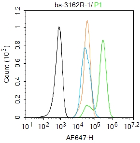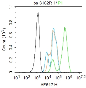 Primary Antibody (green line): Rabbit Anti-Phospho-FAK (Tyr576 + Tyr577) antibody (bs-3162R)