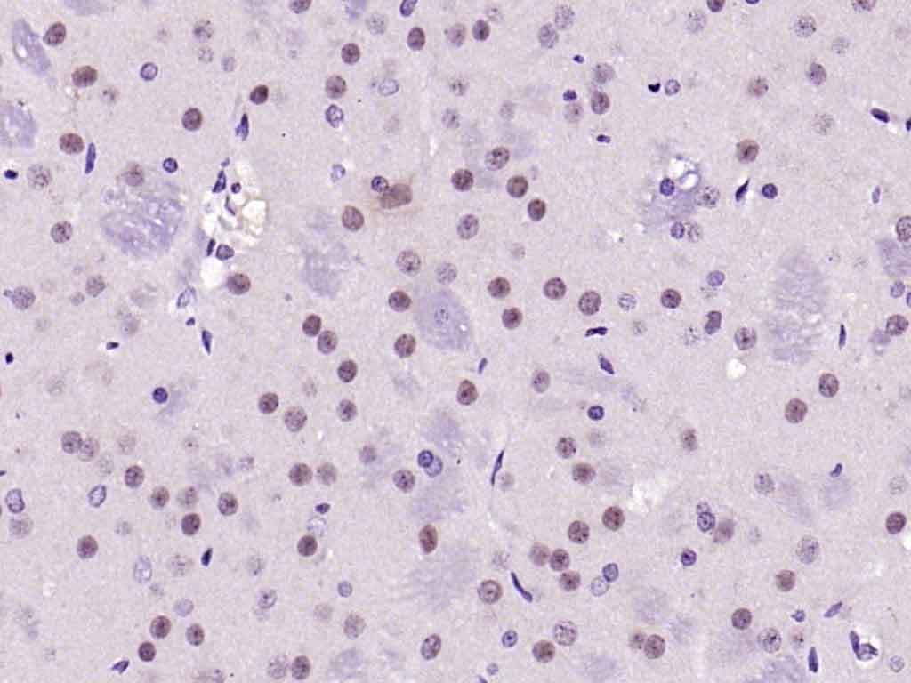 Paraformaldehyde-fixed, paraffin embedded (mouse brain); Antigen retrieval by boiling in sodium citrate buffer (pH6.0) for 15min; Block endogenous peroxidase by 3% hydrogen peroxide for 20 minutes; Blocking buffer (normal goat serum) at 37°C for 30min; Antibody incubation with (Phospho-FAK (Tyr576 + Tyr577)) Polyclonal Antibody, Unconjugated (bs-3162R ) at 1:200 overnight at 4°C, followed by operating according to SP Kit(Rabbit) (sp-0023) instructionsand DAB staining.