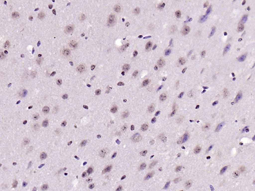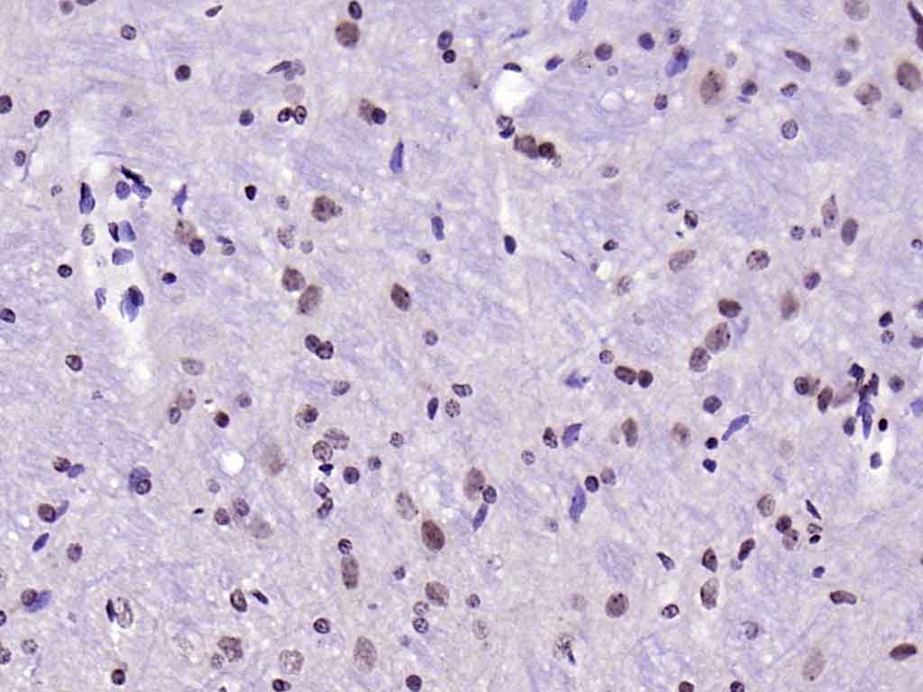 Paraformaldehyde-fixed, paraffin embedded (mouse brain); Antigen retrieval by boiling in sodium citrate buffer (pH6.0) for 15min; Block endogenous peroxidase by 3% hydrogen peroxide for 20 minutes; Blocking buffer (normal goat serum) at 37°C for 30min; Antibody incubation with (phospho-IRS1 (Ser636 + Ser639)) Polyclonal Antibody, Unconjugated (bs-3201R ) at 1:200 overnight at 4°C, followed by operating according to SP Kit(Rabbit) (sp-0023) instructionsand DAB staining.