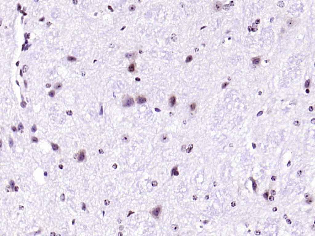 Paraformaldehyde-fixed, paraffin embedded (rat brain); Antigen retrieval by boiling in sodium citrate buffer (pH6.0) for 15min; Block endogenous peroxidase by 3% hydrogen peroxide for 20 minutes; Blocking buffer (normal goat serum) at 37°C for 30min; Antibody incubation with (phospho-IRS1 (Ser636 + Ser639)) Polyclonal Antibody, Unconjugated (bs-3201R ) at 1:200 overnight at 4°C, followed by operating according to SP Kit(Rabbit) (sp-0023) instructionsand DAB staining.