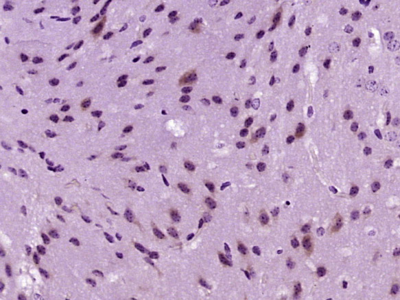 Paraformaldehyde-fixed, paraffin embedded (mouse brain tissue); Antigen retrieval by boiling in sodium citrate buffer (pH6.0) for 15min; Block endogenous peroxidase by 3% hydrogen peroxide for 20 minutes; Blocking buffer (normal goat serum) at 37°C for 30min; Antibody incubation with (ACACB) Polyclonal Antibody, Unconjugated (bs-2745R) at 1:400 overnight at 4°C, followed by operating according to SP Kit(Rabbit) (sp-0023) instructionsand DAB staining.
