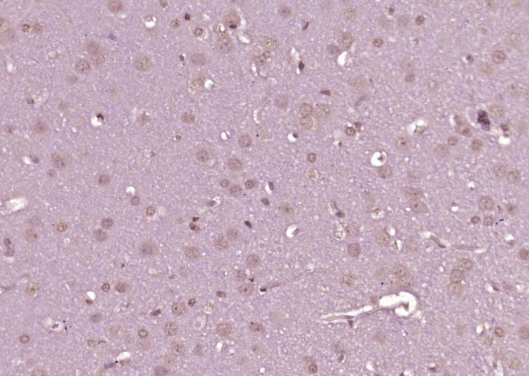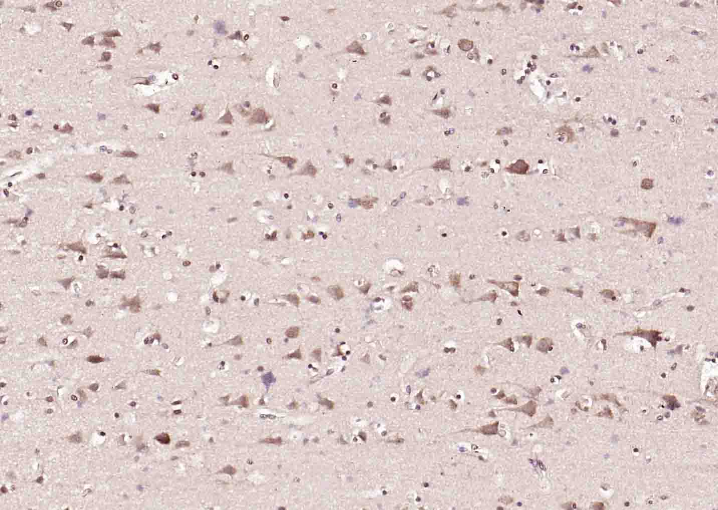 Paraformaldehyde-fixed, paraffin embedded (human brain); Antigen retrieval by boiling in sodium citrate buffer (pH6.0) for 15min; Block endogenous peroxidase by 3% hydrogen peroxide for 20 minutes; Blocking buffer (normal goat serum) at 37°C for 30min; Incubation with (phospho-c-Abl (Tyr226)) Polyclonal Antibody, Unconjugated (bs-3041R) at 1:200 overnight at 4°C, followed by operating according to SP Kit(Rabbit) (sp-0023) instructionsand DAB staining.