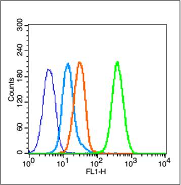 Secondary Antibody (white blue line): Goat anti-rabbit IgG-FITC,Dilution: 1μg /test.