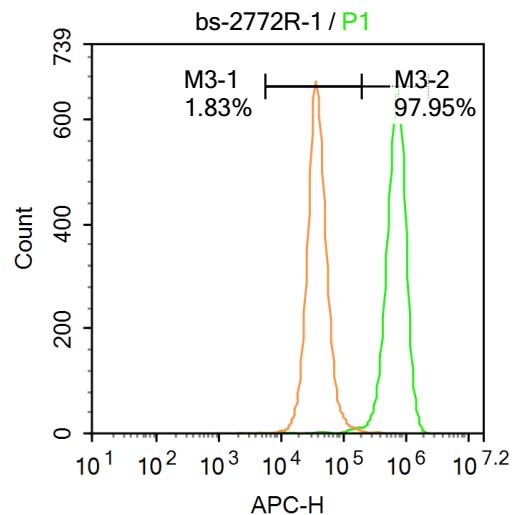 Primary Antibody (green line): Rabbit Anti-KLF2 antibody (bs-2772R)