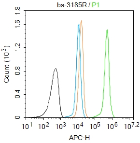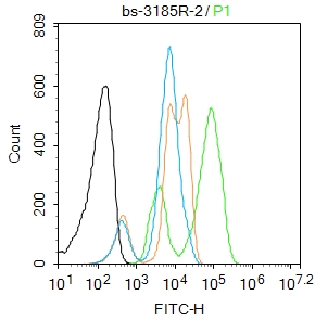 Primary Antibody (green line): Rabbit Anti-Phospho-Histone H2A.X (Ser139) antibody (bs-3185R)