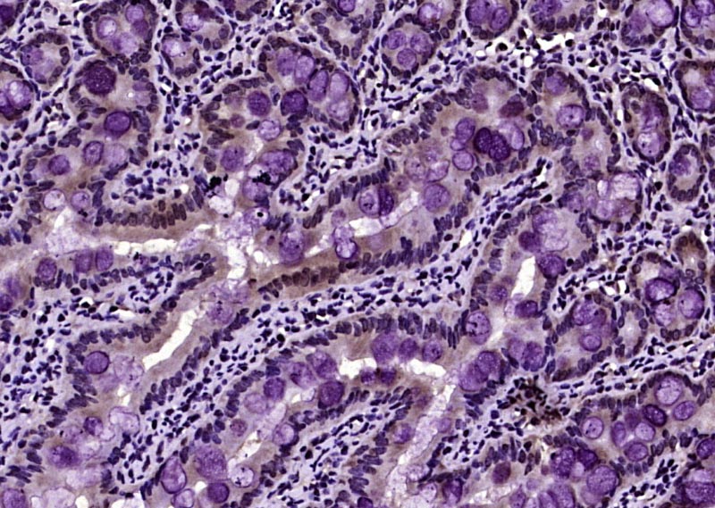 Paraformaldehyde-fixed, paraffin embedded (Rat colon); Antigen retrieval by boiling in sodium citrate buffer (pH6.0) for 15min; Block endogenous peroxidase by 3% hydrogen peroxide for 20 minutes; Blocking buffer (normal goat serum) at 37°C for 30min; Antibody incubation with (Phospho-Histone H3 (Thr11)) Polyclonal Antibody, Unconjugated (bs-3188R) at 1:400 overnight at 4°C, followed by operating according to SP Kit(Rabbit) (sp-0023) instructionsand DAB staining.
