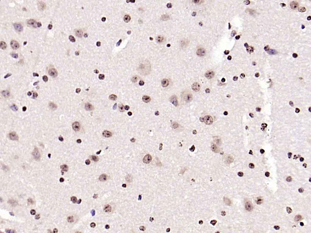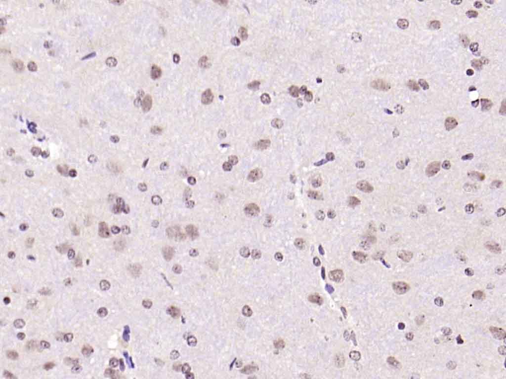 Paraformaldehyde-fixed, paraffin embedded (mouse brain); Antigen retrieval by boiling in sodium citrate buffer (pH6.0) for 15min; Block endogenous peroxidase by 3% hydrogen peroxide for 20 minutes; Blocking buffer (normal goat serum) at 37°C for 30min; Antibody incubation with (phospho-IRS1 (Tyr1229)) Polyclonal Antibody, Unconjugated (bs-3203R) at 1:200 overnight at 4°C, followed by operating according to SP Kit(Rabbit) (sp-0023) instructionsand DAB staining.
