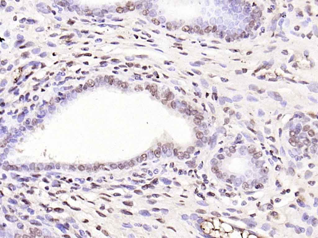 Paraformaldehyde-fixed, paraffin embedded (human endometrial carcinoma); Antigen retrieval by boiling in sodium citrate buffer (pH6.0) for 15min; Block endogenous peroxidase by 3% hydrogen peroxide for 20 minutes; Blocking buffer (normal goat serum) at 37°C for 30min; Antibody incubation with (phospho-IRS1 (Tyr1229)) Polyclonal Antibody, Unconjugated (bs-3203R) at 1:200 overnight at 4°C, followed by operating according to SP Kit(Rabbit) (sp-0023) instructionsand DAB staining.