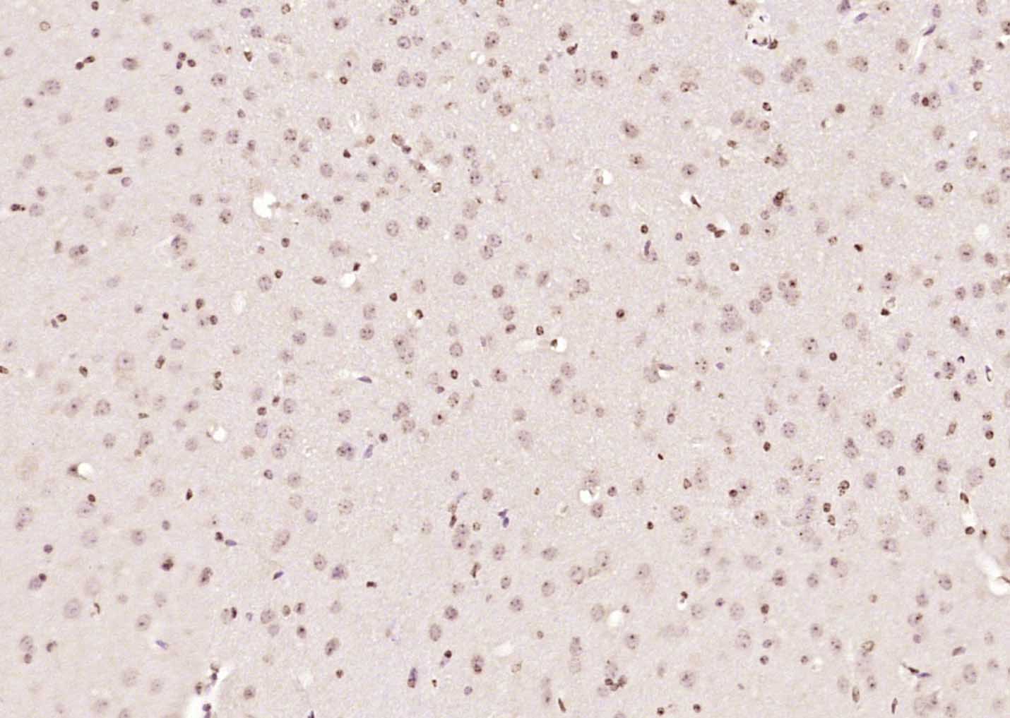 Paraformaldehyde-fixed, paraffin embedded (mouse brain tissue); Antigen retrieval by boiling in sodium citrate buffer (pH6.0) for 15min; Block endogenous peroxidase by 3% hydrogen peroxide for 20 minutes; Blocking buffer (normal goat serum) at 37°C for 30min; Antibody incubation with (Phospho-HER4 (Tyr1284)) Polyclonal Antibody, Unconjugated (bs-3220R) at 1:400 overnight at 4°C, followed by operating according to SP Kit(Rabbit) (sp-0023) instructionsand DAB staining.