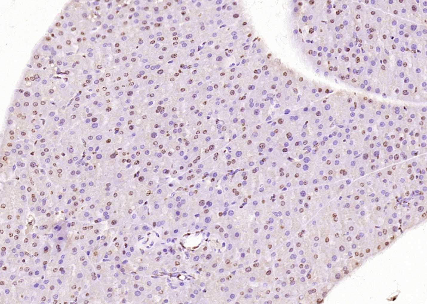 Paraformaldehyde-fixed, paraffin embedded (mouse pancreas tissue); Antigen retrieval by boiling in sodium citrate buffer (pH6.0) for 15min; Block endogenous peroxidase by 3% hydrogen peroxide for 20 minutes; Blocking buffer (normal goat serum) at 37°C for 30min; Antibody incubation with (Phospho-HER4 (Tyr1284)) Polyclonal Antibody, Unconjugated (bs-3220R) at 1:400 overnight at 4°C, followed by operating according to SP Kit(Rabbit) (sp-0023) instructionsand DAB staining.