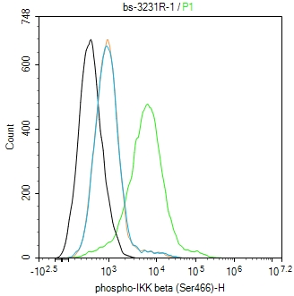 Primary Antibody (green line): Rabbit Anti-phospho-IKK beta (Ser466) antibody (bs-3231R)
