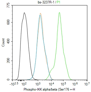 Primary Antibody (green line): Rabbit Anti-Phospho-IKK alpha/beta (Ser176 + Ser180) antibody (bs-3237R)