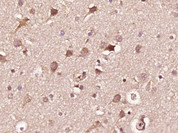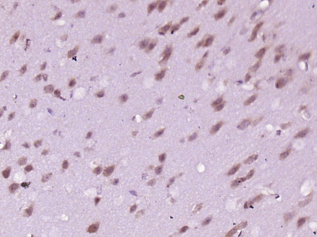 Paraformaldehyde-fixed, paraffin embedded (mouse brain tissue); Antigen retrieval by boiling in sodium citrate buffer (pH6.0) for 15min; Block endogenous peroxidase by 3% hydrogen peroxide for 20 minutes; Blocking buffer (normal goat serum) at 37°C for 30min; Antibody incubation with (INPPL1(Tyr1135)) Polyclonal Antibody, Unconjugated (bs-3399R) at 1:400 overnight at 4°C, followed by operating according to SP Kit(Rabbit) (sp-0023) instructionsand DAB staining.
