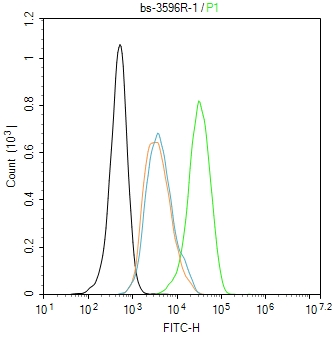 Primary Antibody (green line): Rabbit Anti-SIAH1 antibody (bs-3596R)