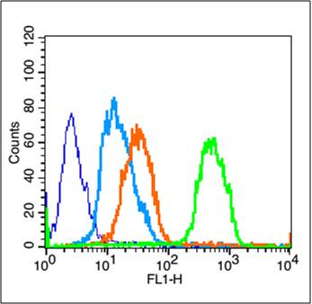 Secondary Antibody (white blue line): Goat anti-rabbit IgG-FITC,Dilution: 1μg /test.