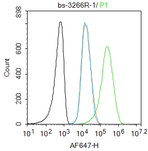 Primary Antibody (green line): Rabbit Anti-Phospho-MDM2 (Ser166) antibody (bs-3266R)
