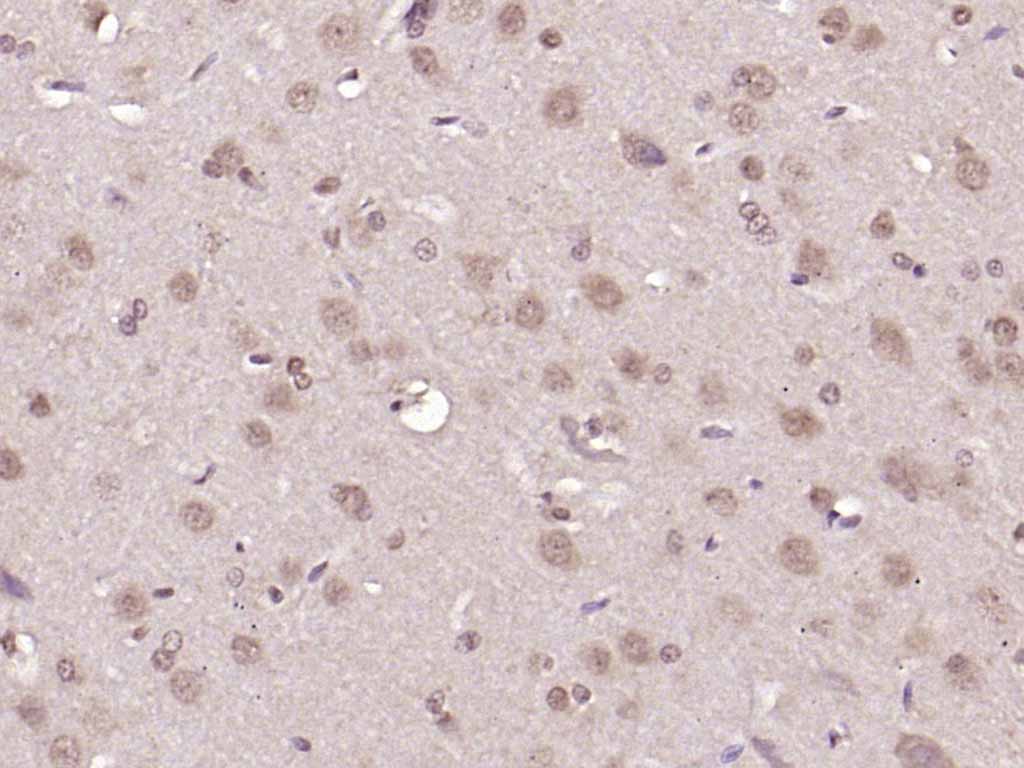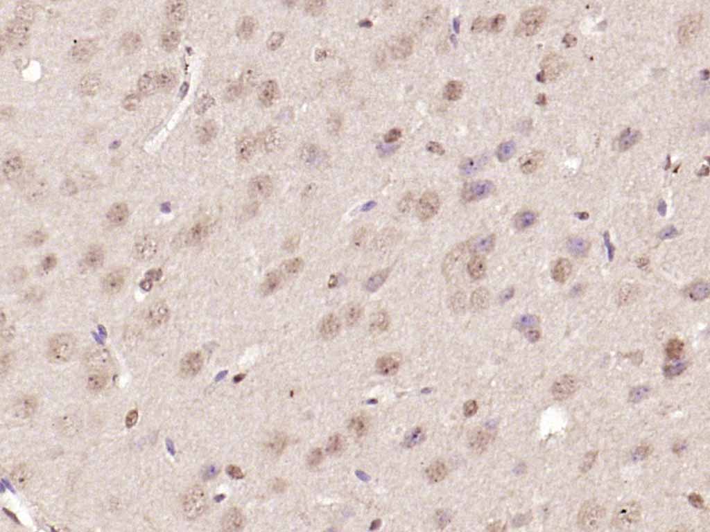 Paraformaldehyde-fixed, paraffin embedded Rat Cerebrum; Antigen retrieval by boiling in sodium citrate buffer (pH6.0) for 15 min; Antibody incubation with Nur77 Polyclonal Antibody, Unconjugated (bs-3513R) at 1:200 overnight at 4°C, followed by conjugation to the bs-0295G-HRP and DAB (C-0010) staining.