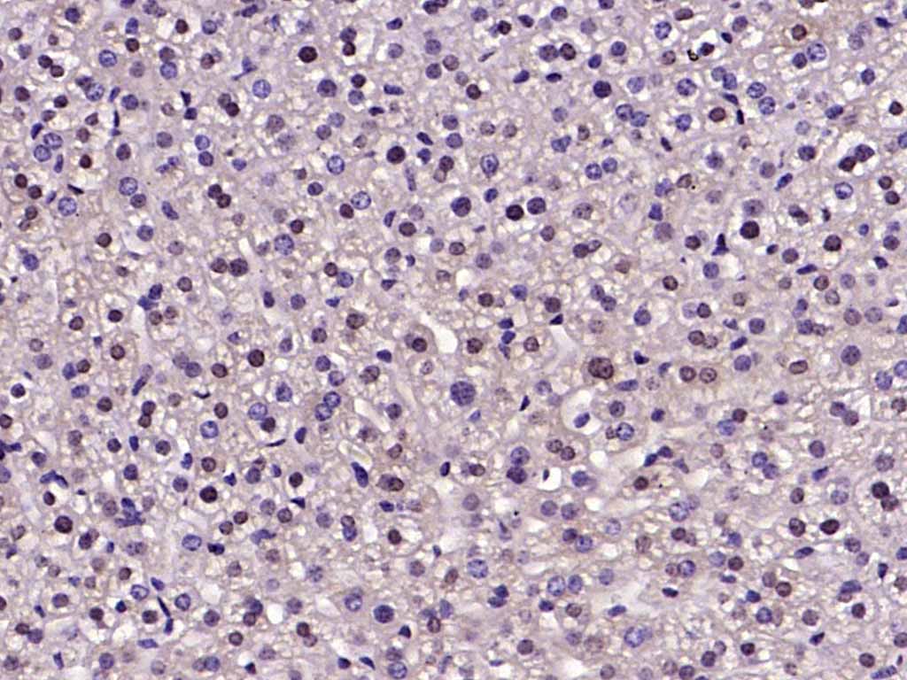 Paraformaldehyde-fixed, paraffin embedded Rat Liver; Antigen retrieval by boiling in sodium citrate buffer (pH6.0) for 15 min; Antibody incubation with Nur77 Polyclonal Antibody, Unconjugated (bs-3513R) at 1:200 overnight at 4°C, followed by conjugation to the bs-0295G-HRP and DAB (C-0010) staining.
