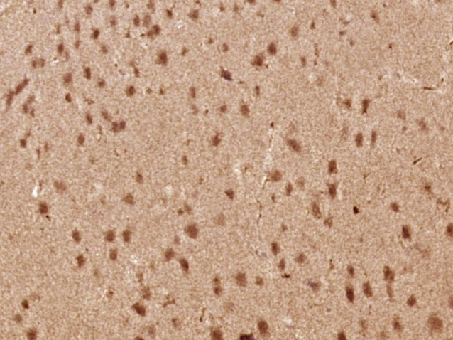 Paraformaldehyde-fixed, paraffin embedded (Mouse brain); Antigen retrieval by boiling in sodium citrate buffer (pH6.0) for 15min; Block endogenous peroxidase by 3% hydrogen peroxide for 20 minutes; Blocking buffer (normal goat serum) at 37°C for 30min; Antibody incubation with (Phospho-Nur77(Ser351)) Polyclonal Antibody, Unconjugated (bs-3313R) at 1:400 overnight at 4°C, followed by operating according to SP Kit(Rabbit) (sp-0023) instructions and DAB staining.