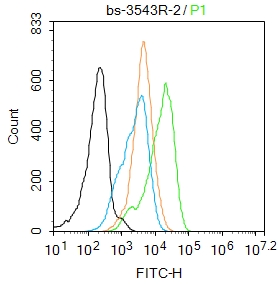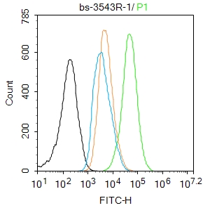 Primary Antibody (green line): Rabbit Anti-Phospho-NFKB p65 (Ser276) antibody (bs-3543R)