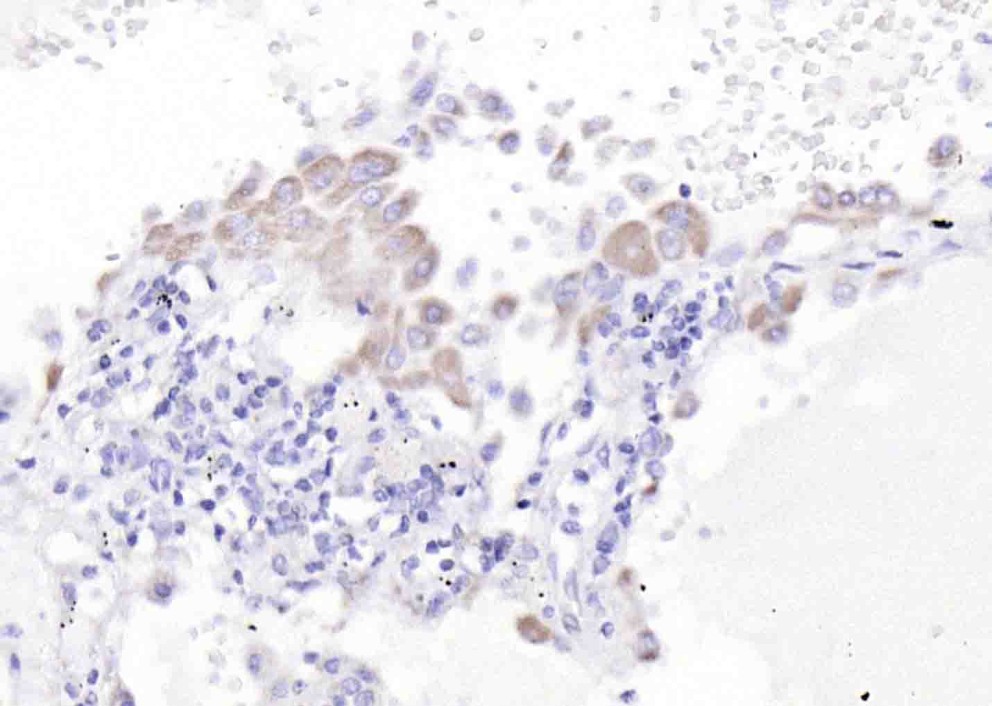 Paraformaldehyde-fixed, paraffin embedded Human Lung Cancer; Antigen retrieval by boiling in sodium citrate buffer (pH6.0) for 15 min; Antibody incubation with Raptor Polyclonal Antibody, Unconjugated (bs-3559R) at 1:200 overnight at 4°C, followed by conjugation to the bs-0295G-HRP and DAB (C-0010) staining.