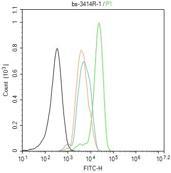 Primary Antibody (green line): Rabbit Anti-phospho-SHC1 (Tyr239 + Tyr240) antibody (bs-3414R)