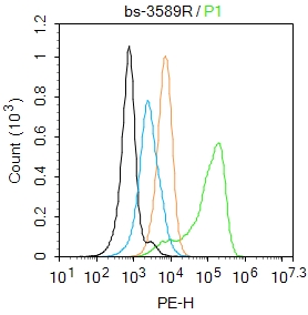 Primary Antibody (green line): Rabbit Anti-Phospho-eNOS (Thr113) antibody (bs-3589R)