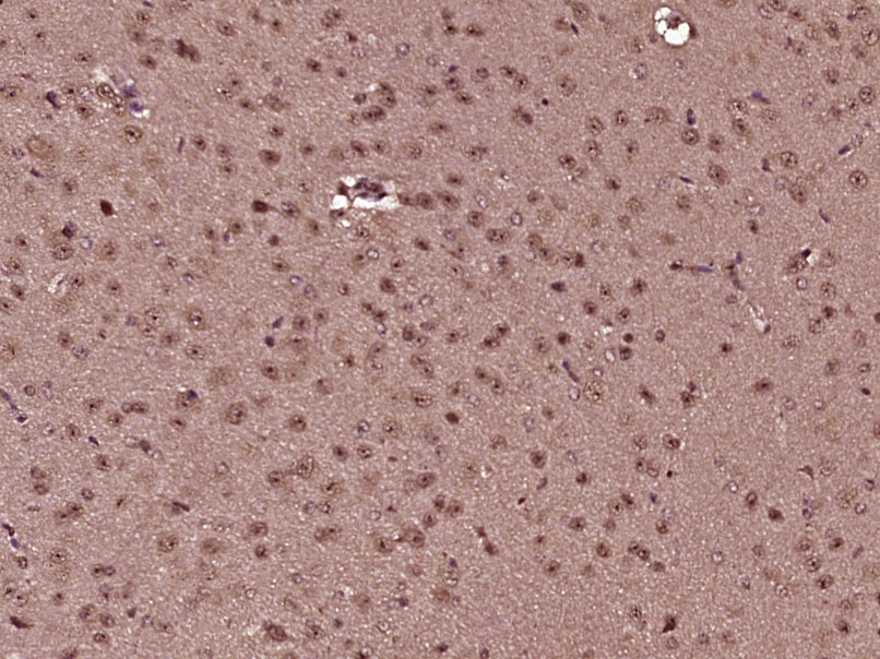 Paraformaldehyde-fixed, paraffin embedded (Mouse brain); Antigen retrieval by boiling in sodium citrate buffer (pH6.0) for 15min; Block endogenous peroxidase by 3% hydrogen peroxide for 20 minutes; Blocking buffer (normal goat serum) at 37°C for 30min; Antibody incubation with (KLF8) Polyclonal Antibody, Unconjugated (bs-3649R) at 1:400 overnight at 4°C, followed by operating according to SP Kit(Rabbit) (sp-0023) instructionsand DAB staining.