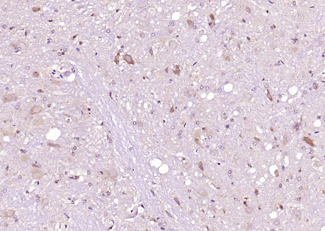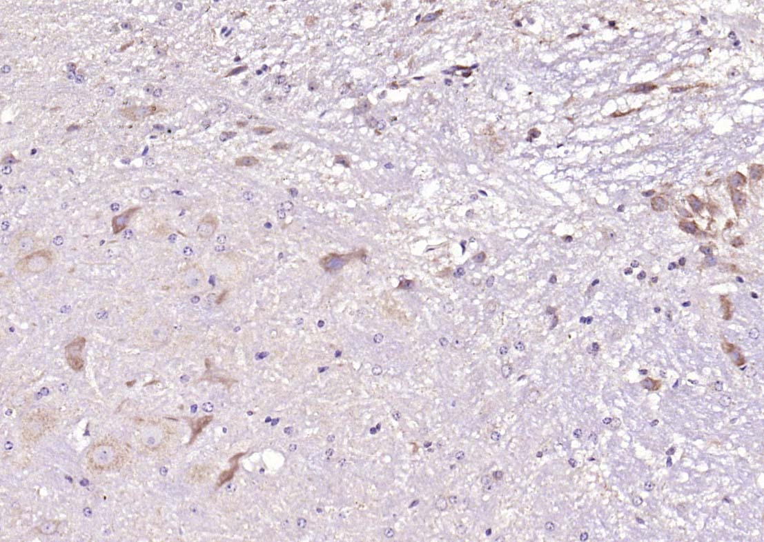 Paraformaldehyde-fixed, paraffin embedded (rat brain); Antigen retrieval by boiling in sodium citrate buffer (pH6.0) for 15min; Block endogenous peroxidase by 3% hydrogen peroxide for 20 minutes; Blocking buffer (normal goat serum) at 37°C for 30min; Antibody incubation with (Oct-4B OCT4B-190) Polyclonal Antibody, Unconjugated (bs-3816R) at 1:200 overnight at 4°C, followed by operating according to SP Kit(Rabbit) (sp-0023) instructionsand DAB staining.