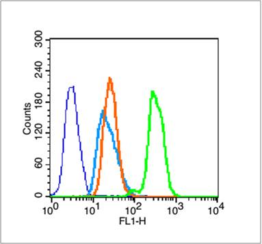 Secondary Antibody (white blue line): Goat anti-rabbit IgG-FITC,Dilution: 1μg /test.