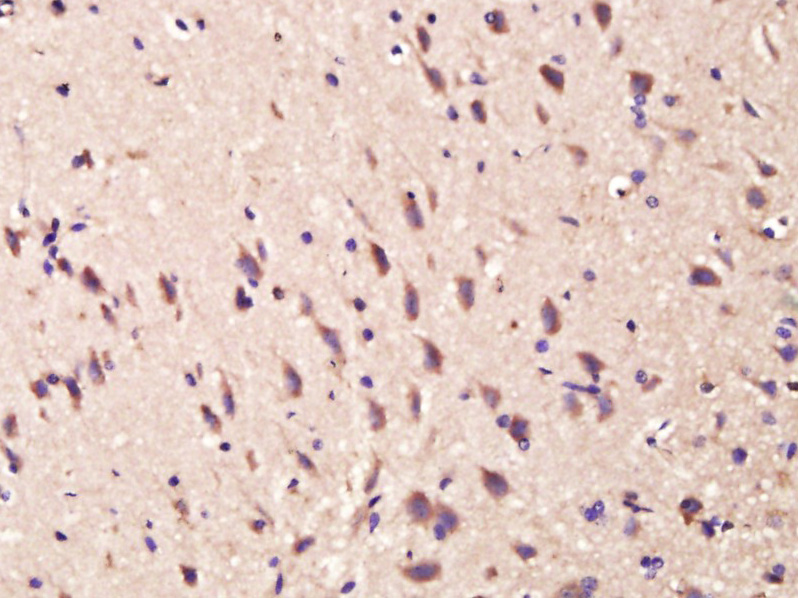 Paraformaldehyde-fixed, paraffin embedded (Rat brain); Antigen retrieval by boiling in sodium citrate buffer (pH6.0) for 15min; Block endogenous peroxidase by 3% hydrogen peroxide for 20 minutes; Blocking buffer (normal goat serum) at 37°C for 30min; Antibody incubation with (Amphiregulin) Polyclonal Antibody, Unconjugated (bs-3847R) at 1:400 overnight at 4°C, followed by operating according to SP Kit(Rabbit) (sp-0023) instructions and DAB staining.