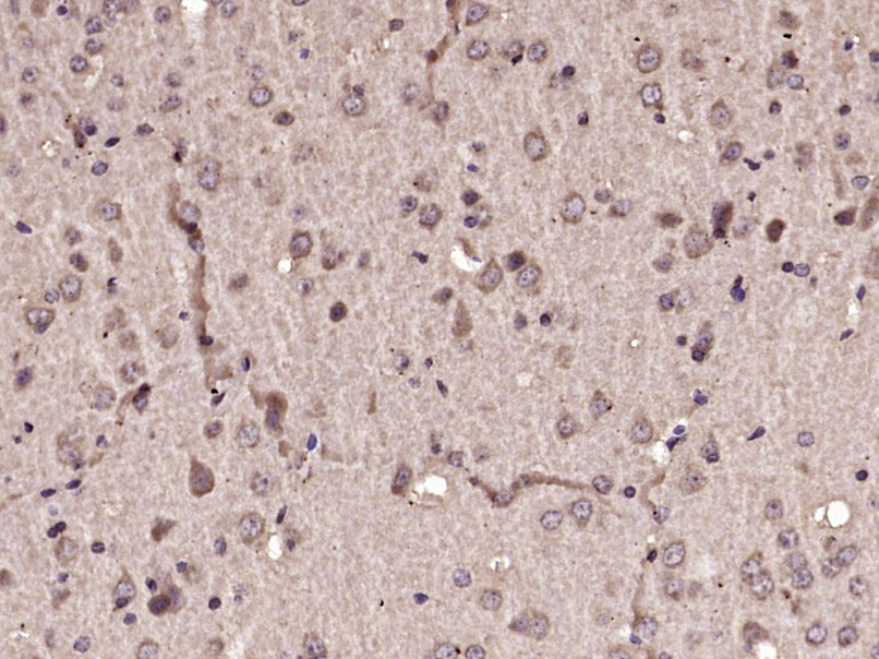 Paraformaldehyde-fixed, paraffin embedded (Mouse brain); Antigen retrieval by microwave in sodium citrate buffer (pH6.0) ; Block endogenous peroxidase by 3% hydrogen peroxide for 30 minutes; Blocking buffer (3% BSA) at RT for 30min; Antibody incubation with (CYP24A1) Polyclonal Antibody, Unconjugated (bs-3899R) at 1:400 overnight at 4°C, followed by conjugation to the secondary antibody (labeled with HRP)and DAB staining.