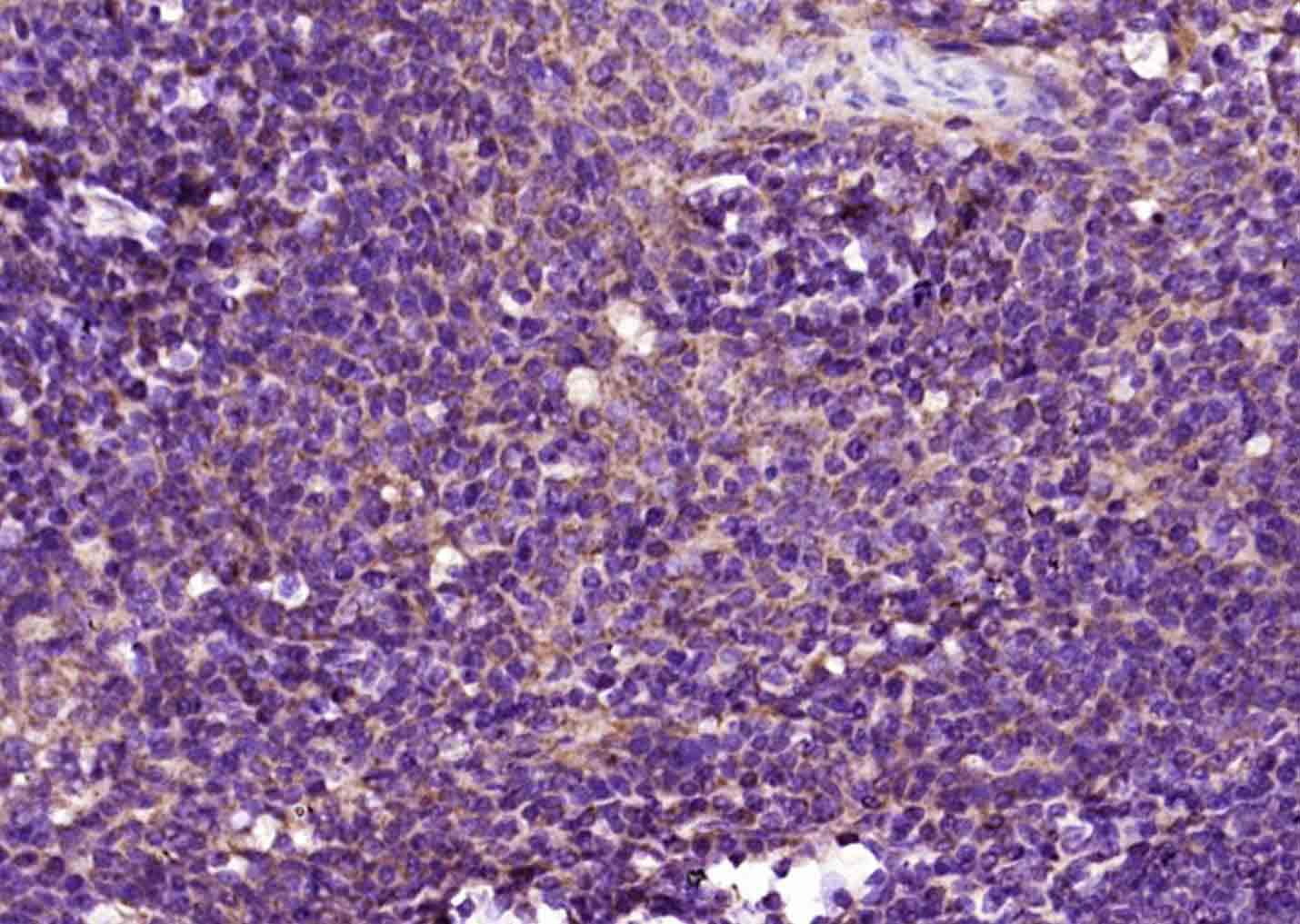 Image was kindly submitted by Dr.David M Burmeister from US Army Institute of Surgical Research. Pig lymph nodes stained with Rabbit Anti-CD4 Polyclonal Antibody(bs-bs-0647R)at 1:300 for one hour at room temperature.