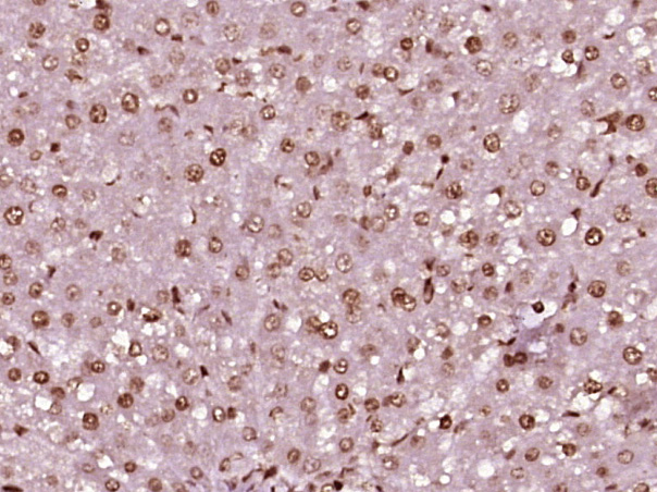 Paraformaldehyde-fixed, paraffin embedded (Rat liver); Antigen retrieval by boiling in sodium citrate buffer (pH6.0) for 15min; Block endogenous peroxidase by 3% hydrogen peroxide for 20 minutes; Blocking buffer (normal goat serum) at 37°C for 30min; Antibody incubation with (Histone H4 (Acetyl K8)) Polyclonal Antibody, Unconjugated (bs-4016R) at 1:400 overnight at 4°C, followed by operating according to SP Kit(Rabbit) (sp-0023) instructions and DAB staining.