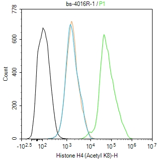Primary Antibody (green line): Rabbit Anti-Histone H4 (Acetyl K8) antibody (bs-4016R)