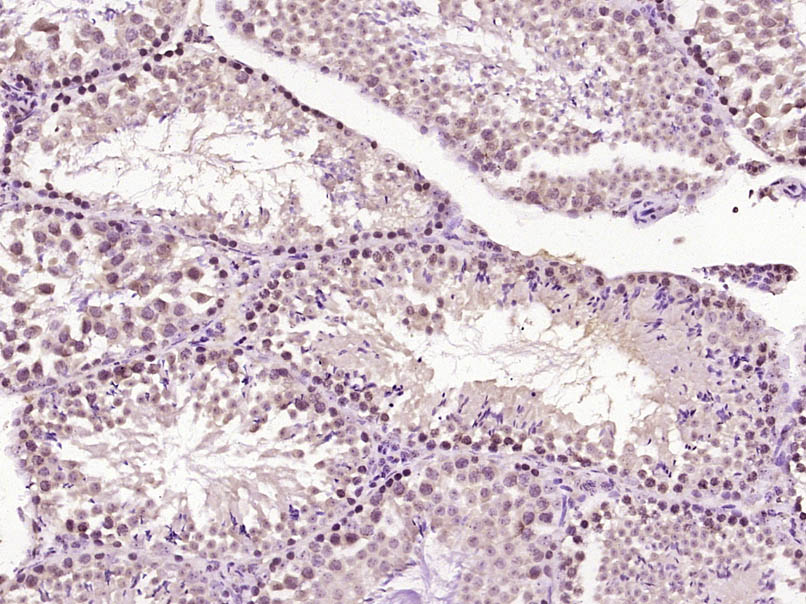 Paraformaldehyde-fixed, paraffin embedded (Mouse testis); Antigen retrieval by boiling in sodium citrate buffer (pH6.0) for 15min; Block endogenous peroxidase by 3% hydrogen peroxide for 20 minutes; Blocking buffer (normal goat serum) at 37°C for 30min; Antibody incubation with (PER1 protein) Polyclonal Antibody, Unconjugated (bs-2350R) at 1:400 overnight at 4°C, followed by operating according to SP Kit(Rabbit) (sp-0023) instructionsand DAB staining.